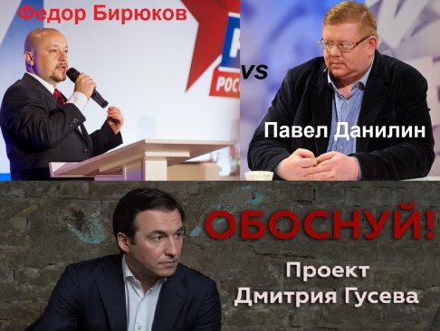 В рамках проекта известного политтехнолога Дмитрия Гусева "Обоснуй!" в понедельник 8 августа в 21.00 по Московскому времени в прямом эфире фейсбука состоятся дебаты между директором Центра политического анализа Павлом Данилиным и идеологом партии "РОДИНА" Федором Бирюковым.