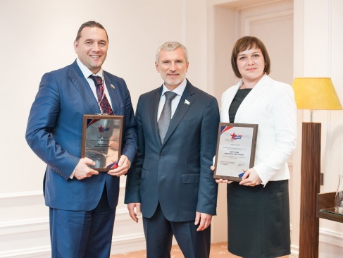 Журавлев вручил новым соратникам партии "РОДИНА" наградные плакетки и выразил уверенность, что они помогут партии добиться победы на парламентских выборах 18 сентября и сформировать фракцию в Госдуме.