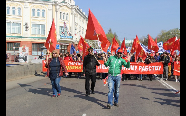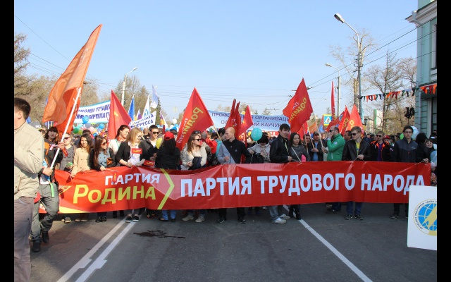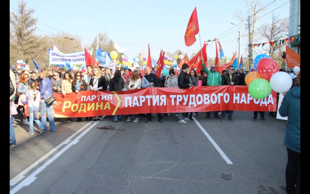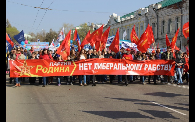 В рядах демонстрантов - трудящиеся омских предприятий, представители общественных организаций, политических партий, молодежь, ветераны. Одной из самых многочисленных колонн стала колонна партии "РОДИНА". Социал-патриоты прошли с растяжками "ПАРТИЯ РОДИНА – ПАРТИЯ ТРУДОВОГО НАРОДА" и "ПАРТИЯ РОДИНА. НЕТ ЛИБЕРАЛЬНОМУ РАБСТВУ". Всего участниками первомайского шествия стали около 10 тысяч человек.